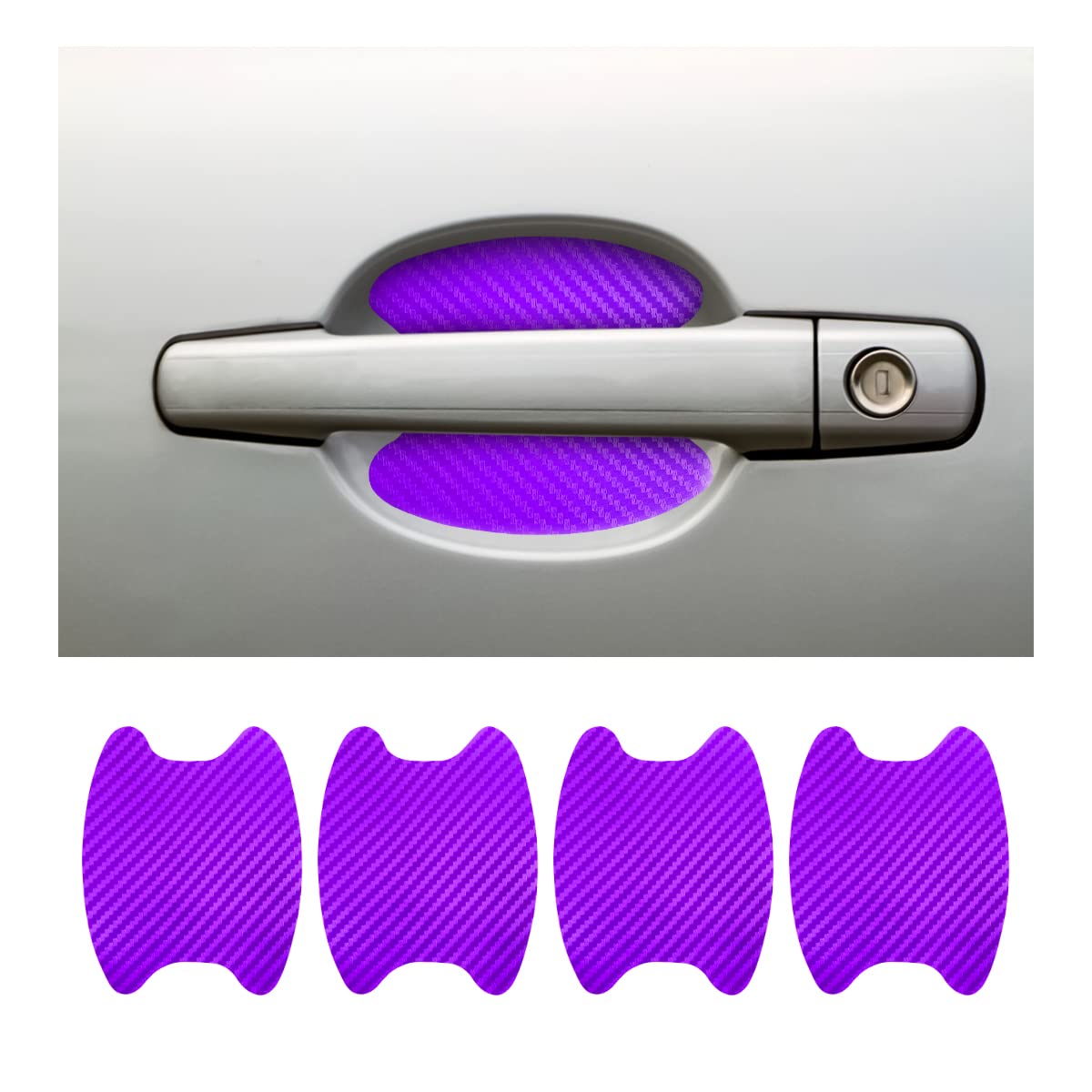 4PCS Carbon Fiber Door Handle Cup Stickers, Auto Scratch Protective Film, Non-Marking Bowl Protector, Paint Cover Guard Universal for Most Cars, SUV, Van (Purple)