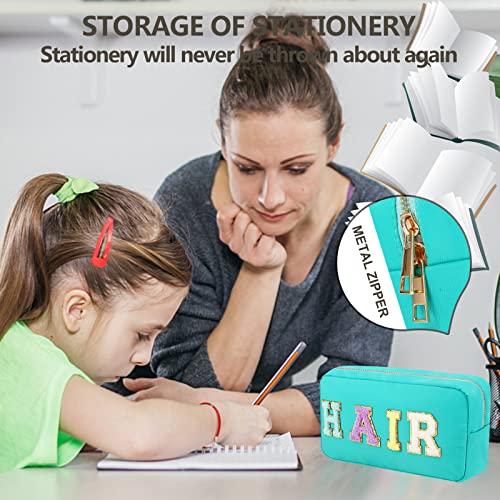 - Shiny Shinier Letters: Travel makeup bag with Shinier letter patches. These colored letters have an interesting flashing border, each letter's color is different, and they will definitely stand out among all other makeup bags! And the letters are fixed with stitching and never come off!