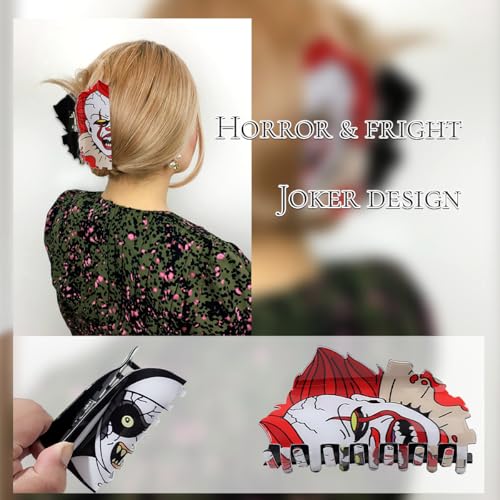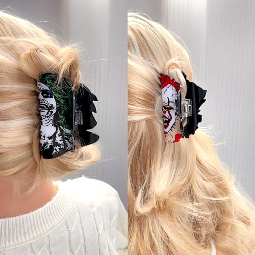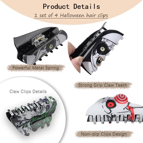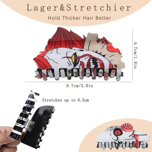 - List: 4 different styles of large Halloween decorative hair clips. Size: 4 x 1.8 inches. White Red Eyes Skull+White Yellow Teeth Ghost Face+Green Hair Water Ghost+Red Hair Devil