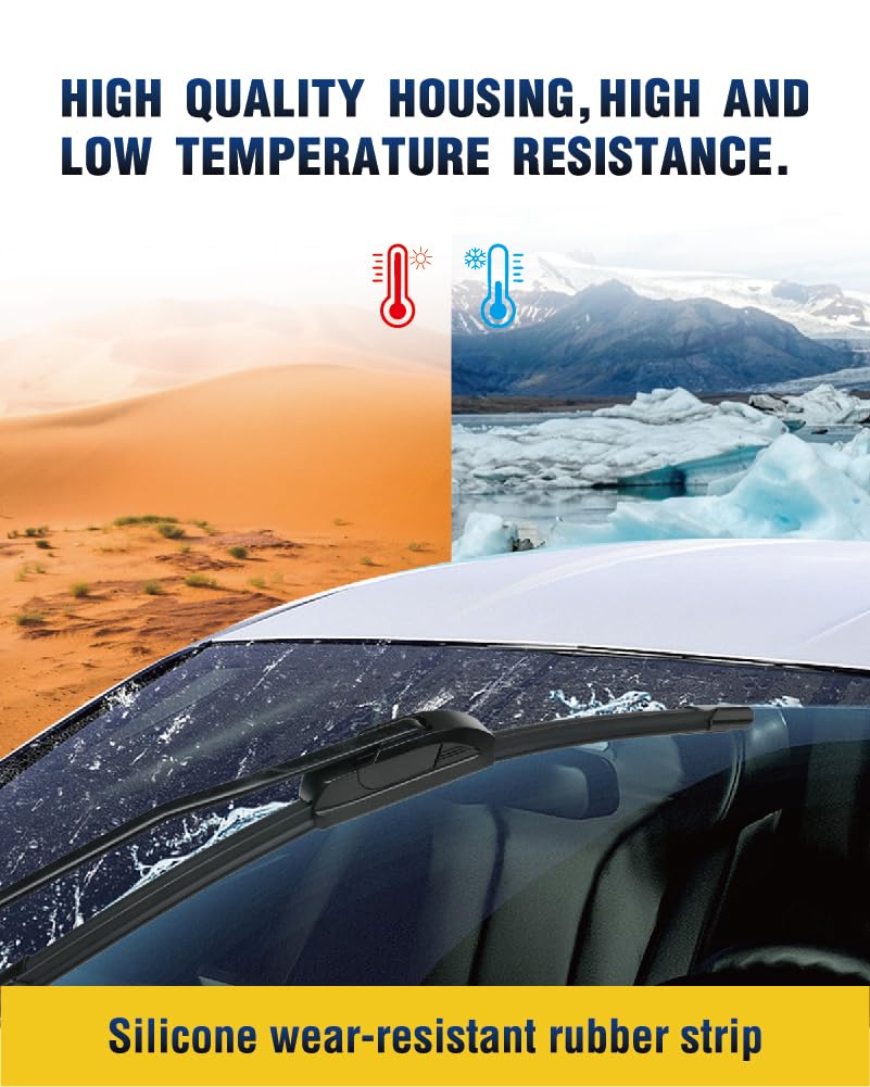 - 【Silicone-coated strip】: Made of 5plus silicone material, not affected by UV rays, has good weather resistance, does not deform at high temperatures, and does not become hard at low temperatures. It is coated with special graphene, reducing wiper friction and providing double protection to prevent wear and make it quieter to use.