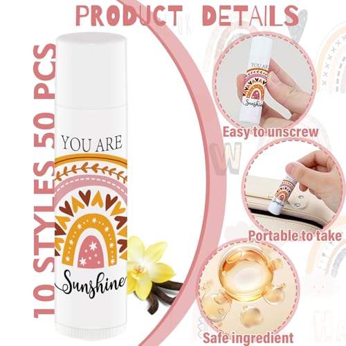 50 PCS Bohemian Rainbow Lip Balm Bulk Inspirational Words Appreciation Gift for Women Thank You Gifts Moisturizer Lips for Teacher Baby Shower Coworkers Friend Wedding Bridal Shower Thanksgiving