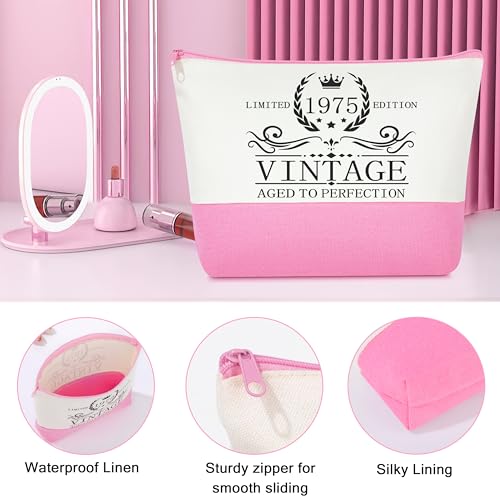 - 50th Birthday Gifts for Women: The coffee cup is designed with elegant marble texture and bright 1975 vintage gold lettering, making it a great gift idea for women's 50th birthday. The 50th makeup bag can hold a lot of items, measuring 10.4''x 7.2''. A three-fold greeting card offers spaces to write heartfelt wishes