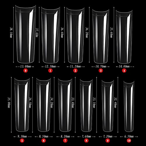 550 PCs XXL Tarpered Square Nail Tips,SITELENABY Ultra-thin Half Cover Clear Square Nail Tips False Artificial Nails Tips 11 Sizes with Box (Tapered Square French Tips)