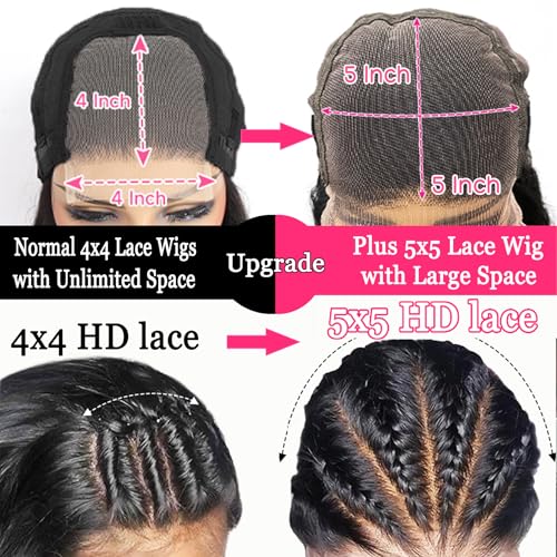 - 5x5 Hd Lace Front Wigs Human Hair Details: Body Wave Lace Wigs Human Hair, Pre-Pulled Natural Hairline,, Lightly Bleached And Dyed Knots, Blends Perfectly With The Skin, Soft And Breathable, Lace Part Has Deeper Space For Center Or Side Parting Or High Ponytail