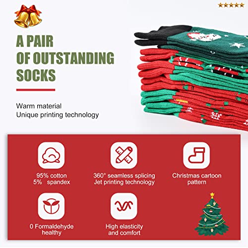 6 Pairs Christmas Socks for Women,Xmas Crew Socks Holiday Gift Novelty Socks US Size 6-13