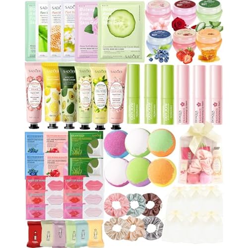 - Gentle & Nourishing Formula - Our party skincare Set features natural extracts including Vitamin E, aloe vera, and fruit extracts, making it safe and gentle for most skin types. The mask, lip balm, bath ball, and hand cream are all plant-based, effectively replenishing moisture and deeply nourishing the skin.Suitable for daily skincare, deep cleansing, comfortable relaxation,making this spa kit ideal for every spa set lover.