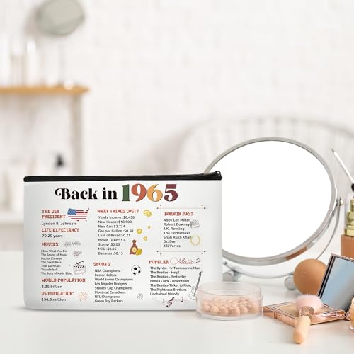 60th Birthday Gifts for women, 1965 60 Year Old Birthday Decorations Makeup Bag with Natural Stone Bracelet and Keychain, Gift Ideas for Woman, Her, Grandma, Mom, Wife, Sister, Teacher