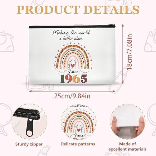 - 1965 60th Birthday Gifts: You will receive a rainbow makeup bag, a bracelet, and a inspirational keychain, beautiful patterns and meaningful sentences to show your personal style. Choose inspiring and meaningful designs to express yourself