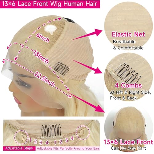 - Blonde Lace Front Wigs Human Hair Construction: 613 13x6 Lace Front Wig Human Hair Pre Plucked Natural Hair Line With Baby Hair, Make It Looks Your Own Hair Natural Grow. 180% Density 613 HD Lace Frontal Wig full and thick,,6inch deep parting space allows more freedom to do side part or middle part. HD Transparent lace blends very well