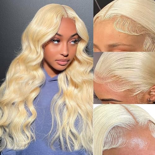 613 Lace Front Wig Human Hair Blonde Lace Front Wig Human Hair 13x4 Body Wave Lace Front Wig Human Hair Transparent 613 Frontal Wig Pre Plucked With Baby Hair 180% Density 18 Inch