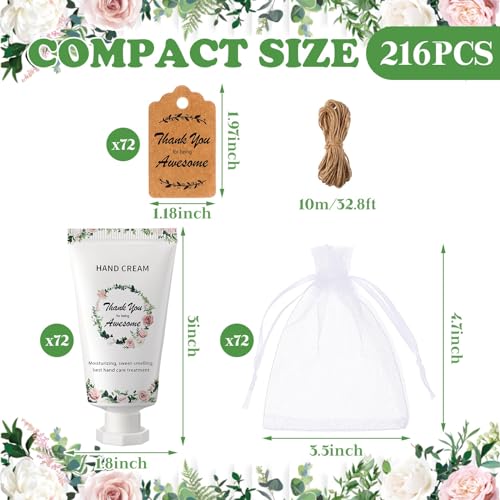 - Hand Cream Gift Set: this gift set is an ideal gift set for women; The scent of blossoms will make you feel comfortable and relaxed, uplifting, and nourishing for the soul; The set includes 72 hand creams, 72 organza bags, and 72 cards, enough to share with your family and friend during weddings, Mother's Day, Christmas, and other holidays