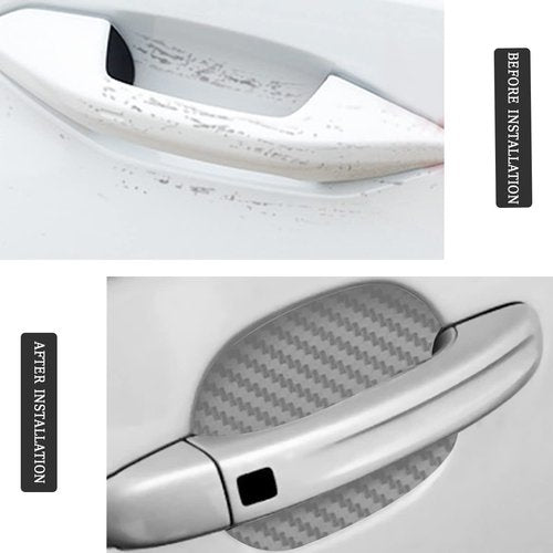 - 【Carbon Fiber Scratch Protection】: This car door handle sticker is designed with carbon fiber texture, which looks mordern and stylish, this sticker is a great decoration for your vehicle, it add some fashion and personality and makes your vehicle stand out and eye catching. This handle sticker has a smooth edge so it will not do harm to your vehicle.
