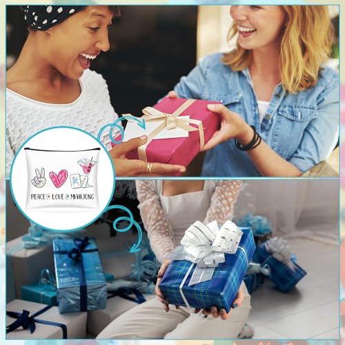 9 Pcs Mahjong Cosmetic Bag Gifts for Women Mahjong Makeup Bag Mah Jong Zippered Pouch for Lover Player Friend Mom Grandma Lucky Birthday Christmas New Year Gift