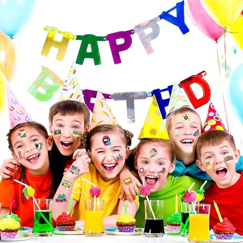 - Cute patterns: 90s 80s Glitter Temporary tattoo stickers, features an assortment, colors are bright, and designs are adorable, which are attractive to children. Our party favors are based on children's happiness both in appearance and inwardness.
