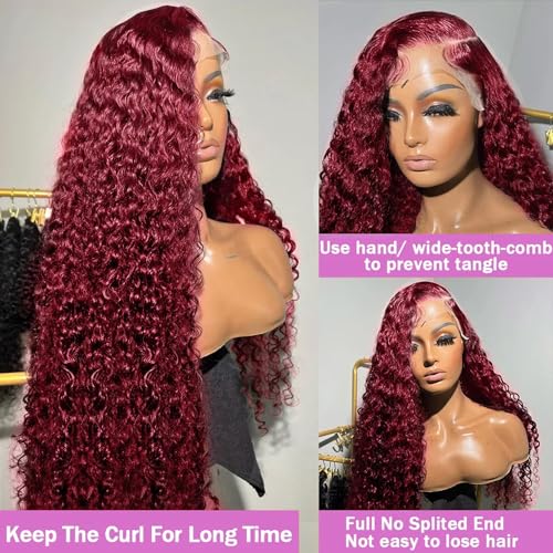 - 99j Burgundy Deep Wave Wigs Material:100% Brazilian virgin human hair lace front wigs for women,human hair cut from healthy young female hair directly;soft and natural,healthy and vibrant,comfortable against skin