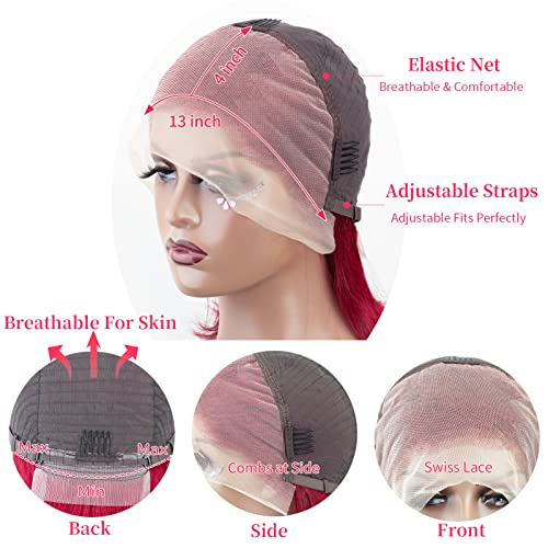 - ¡¼Adjustable Wet and Wavy Wigs Cap¡½99j Brugundy Water Wave 13x4 Lace Front Wigs Human Hair;Curly Lace Frontal Wigs are Medium Cap Size (21.5"-22.5" Inch) with 4 Combs and 2 Adjustable Straps.Comfortable To Wear,Fit for Most People.