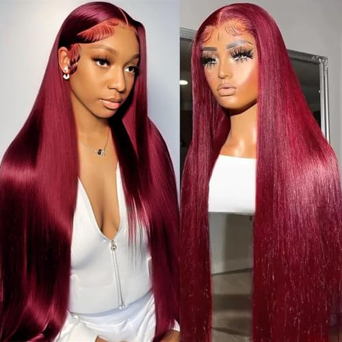 - Burgundy Wig Human Hair Quality: Straight lace front wigs human hair pre plucked with baby hair, absolutely silky and smooth from root to end, making you confident and charming; 200% density HD lace front wigs human hair, full and thick, true to length; no shedding no tangles, no bad smell