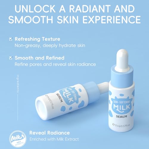 - ¡¼All-in-One Milk Skincare Set¡½: This milk skin care sets for women includes a milk face cleanser, serum, moisturizer, eye cream, milk toner, masks, a headband, and a cleansing brush?everything for a complete skin care routine kit for women and teen skin care kit for kids. Enriched with beauty milk extracts and natural vitamins, it deeply hydrates, soothes, and revitalizes for radiant, soft skin. Perfect as Christmas gifts for teen girls or girls skin care for kids age 8-12