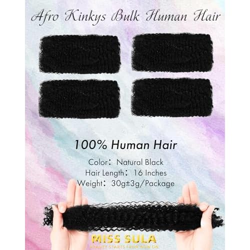 - ¡¼100% Real Human Hair¡½ Miss Sula afro kinky bulk hair is crafted from 100% natural human hair, offering a soft texture with no artificial smell; It can be bleached and dyed to blend seamlessly with your own hair for a flawless, natural look