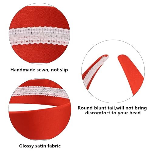 AHONEY Red Headband for Women Girls Satin Silk Headband Non Slip 1.57" Wide Plain Head Band Solid Hair Band DIY Halloween Costume Holiday Christmas Hair Accessories Gifts