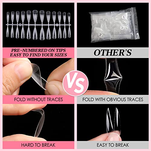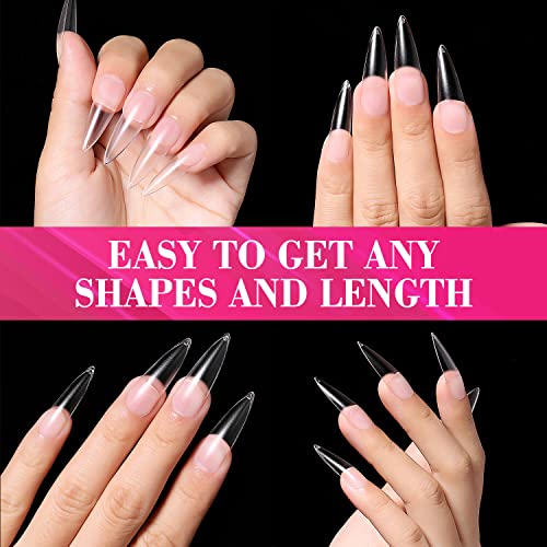 AIMEILI Long Stiletto Gel Nail Tips 432PCS Pre-buff Almond Fake Clear Nails Full Cover, Acrylic False Press on Nails with Box for Nail Art Salon and Home DIY, 10 Sizes