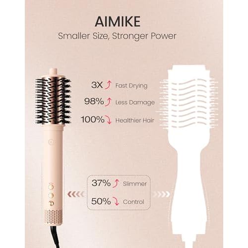 - 3X Faster Drying: AIMIKE blow dryer brush is equipped with a 110,000 RPM high-speed brushless motor that delivers powerful airflow up to 42 m/s. Dry your hair in just 1?8 minutes, up to 3X faster than traditional hot air brushes. Designed for women with busy mornings who need a fast, flawless blowout that saves precious routine time