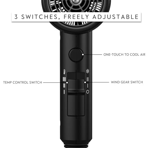 AINA Hair Dryer with Diffuser, Blow Dryer for Women | Advanced Ionic Technology, Ceramic Coating | Cold Shot Features Turbo Heat for Fast Drying and Shine 110V/ALCI (Vader Black)