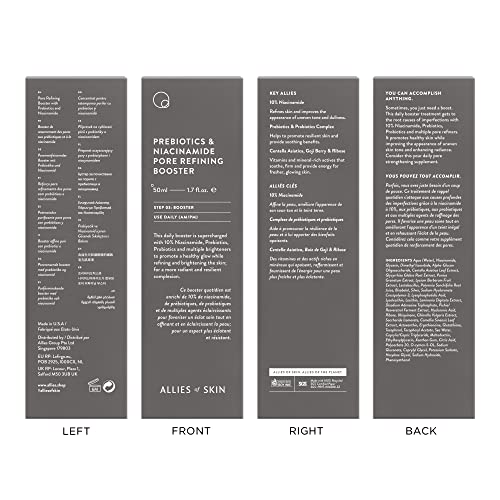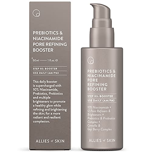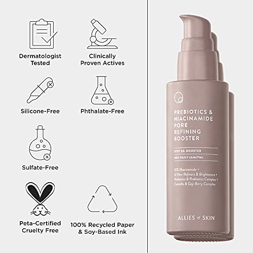 Allies of Skin Prebiotics & Niacinamide Pore Refining Booster | Minimize the Appearance of Pores with Goji Berry & Probiotics Complex | Calm Redness and Treat Blemish Prone, Dull Skin | 1.7 fl oz