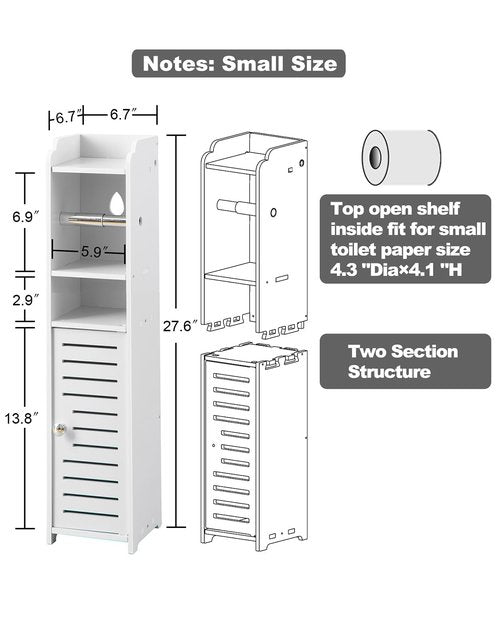 - 【Small Bathroom Storage】-This small bathroom storage cabinet built-in loo-roll holder,narrow profile to fit into small gaps,perfect for storing toilet paper and bathroom accessories;use small bathroom cabinet to keep loo rolls and cleaning products handy but out of view,perfect bathroom storage cabinet will help you keep the bathroom well-stocked.