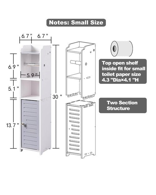 - 【Small Bathroom Storage】-This small bathroom storage cabinet built-in loo-roll holder,narrow profile to fit into small gaps,perfect for storing toilet paper and bathroom accessories;use small bathroom cabinet to keep loo rolls and cleaning products handy but out of view,perfect bathroom storage cabinet will help you keep the bathroom well-stocked.