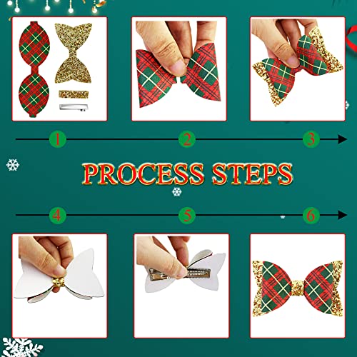 AOUXSEEM 24 Set Faux Leather Hair Bows Clips Making Kit for Beginner, Contains Pre Cut Printed Glitter Solid PU Synthetic Fabric, DIY Hair Clips for Women Girls Holiday decor (Christmas)