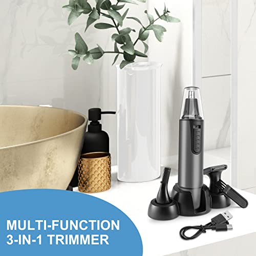 AREYZIN Nose Hair Trimmer for Men,Rechargeable Ear and Nose Trimmer Kit,Professional Painless Eyebrow Facial Hair Clipper, IPX7 Waterproof,Dual Edge Blades Easy Cleansing,Dark Gray