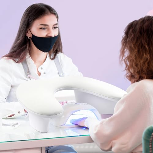 Arm Rest for Nails Tech, U Shaped Soft PU Leather Nail Arm Rest,Ergonomic Slope Angle Hand Rest for Nails Tech,Professional Salon Manicure Arm Rest Cushion (White)