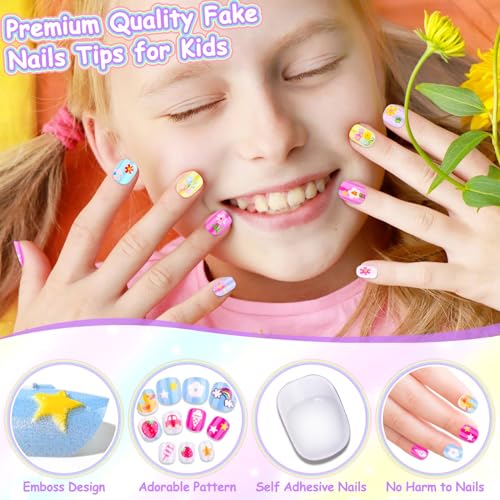 - Pre Glue Stick on Nails: the stickers nails kit adopt pre-glued and press on styles that are easy to apply, first, clean the hands and nails, then choose the suitable kids nail and press on the nails. Your little girl can make their own cute nail art by themselves easily. No glue or tape is needed.