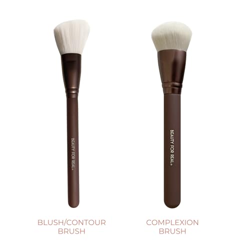 Beauty For Real Essential Pro Complexion Brush Set - Includes 4 Brushes: Blush/Contour, Complexion, Powder & Concealer - Vegan & Cruelty Free