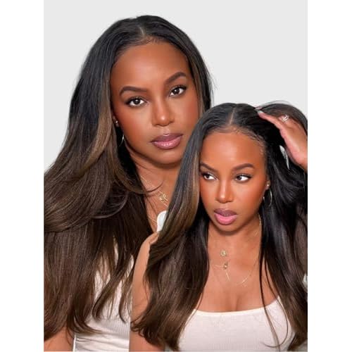 Beauty Forever V Part Wig Human Hair Yaki Straight EasiContour Vpart Wigs No Leave Out Ombre Chestnut Brown Glueless Upgraded U Part Wigs for Women None Lace Front Wigs T128 Color 150% Density 18inch