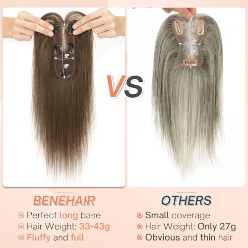 - Premium Human Hair Topper: Crafted with high-quality Brazilian remy human hair,Benehair topper is silky and smooth with no tangling or shedding. Soft, healthy, and glossy, it can be washed, cut, dyed, curled, or straightened just like your natural hair. However, please note that frequent styling may lead to dry ends or split ends
