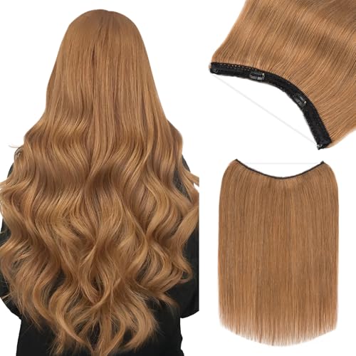 Benehair Miracle Wire Extension for Women Real Human Hair Hairpieces with Invisible Secret Fish Line Adjustable Wire Replacement Light Brown Hair Extension 20inch for Thinning Hair #6