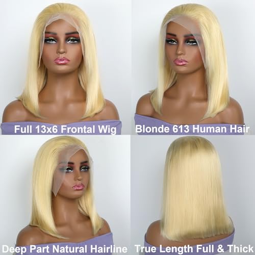 - Blonde 613 13x6 Bob Lace Front Wig Human Hair Brazilian 12A Virgin Remy Hair 14 Inch Short Bob Wig 13x6 Straight Frontal Lace Wig 180 Density Transparent Lace Wigs