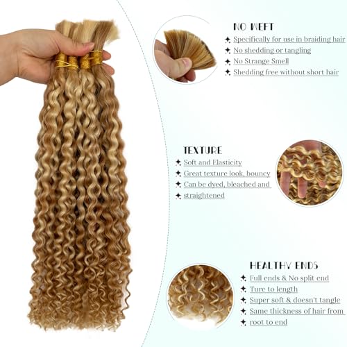 Blonde Braiding Hair 100g 28 Inch Water Wave 2 Bundle Bulk Human Hair for Braiding Highlight Honey Blonde Curly Hair Extensions for Boho Braids Wet and Wavy Human Braiding Hair