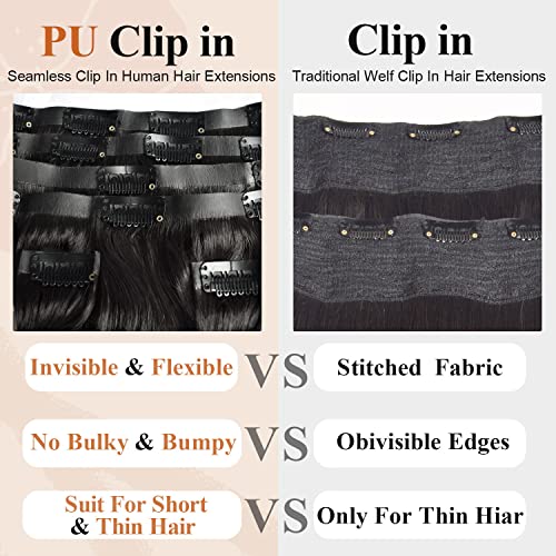 - ¡¼Human Hair Clip in Hair Extensions Advantage¡½: Invisible PU Weft Clip in Human Hair Extensions Press Hair on PU with Clips, Thin Weft Edge. It is Suits Almost All Ladies, Easy to Wear and Go, Beginner-Friendly, Versatile, and Perfect for Everyday Wear.