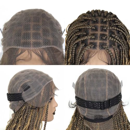 Boho Braided Wigs for black women, Knotless Box Ombre Black to Honey Brown Bohemian Braid Wig, Full Double Lace Ombre Braided Wig