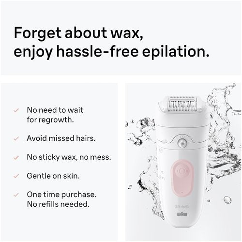 Details: The Braun Silk-épil 5 5-011 ensures up to 1 month of smooth skin, anytime. This Braun epilator is equipped with MicroGrip tweezer technology, capable of capturing hairs that wax can't (as short as 0.5mm). Experience less pain sensation thanks to the massage roller cap. Say goodbye to the inconvenience of waiting for hair to regrow with other hair removal products such as wax. This cordless epilator is designed for convenience and eliminates the need for clean-ups or appointments. It includes a skin contact cap for closer epilation. Tip: for reduced pain sensation, epilate in the bath or shower under warm water. Includes SE5 Epilator, Skin Contact Cap, Cleaning Brush and Pouch.