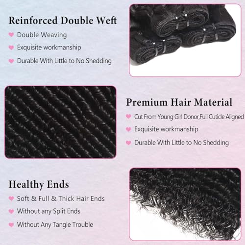 - Bundles Human Hair Texture:12A Grade 3 Bundles Deep Wave Human Hair Machine Made Double Weft Curly Bundles Human Hair£¬Tight and Durable Double Weft,Tangle Free,No Shedding,Full and Thick,Natural and Shiny.Can be Curled, Bleached, Dyed