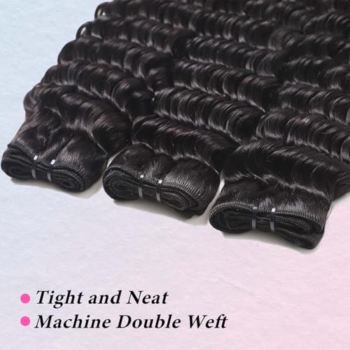 Brazilian Human Hair Deep Wave 12A Grade 100% Unprocessed Virgin Remy Deep Curly Wave Extensions Human Hair Bundles 16 18 20 lnch Double Weft Deep Curly Weave 3 Pcs Natural Black