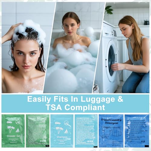 - 4.Ideal for Travel and Hotels :our travel toothbrush set is disposable toothbrushes bulk ,mini toothpaste in bulk . Individually wrapped can maintain the hygiene toothbrushes.8ml of shampoo and shower gel and 10ml travel size detergent laundry ,which is very lightweight and easy to carry and help control the amount used each time.They are perfect for those who are often on business trip or travel.