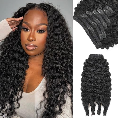 Burmese Curly Clip in Hair Extensions Real Human Hair 8Pcs Brazilian Human Hair Clip ins for Black Women With 18Clips 120g 22inch #1B Natural Black