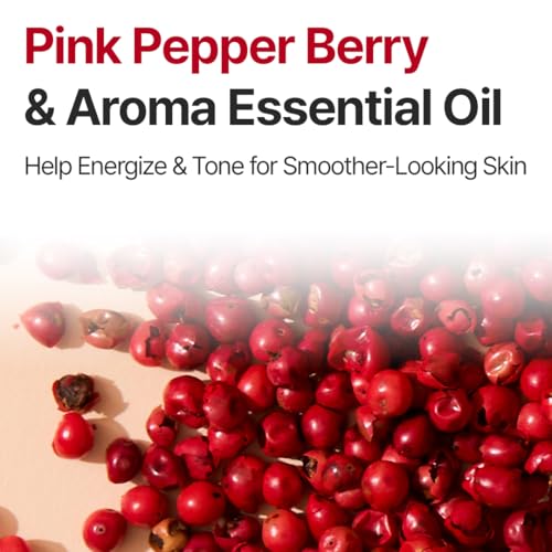 - Infused with Pink Pepper & Essential Oils: A botanical blend of pink pepper, grapefruit and juniper oils energizes skin and revives tired areas, leaving you refreshed and radiant.