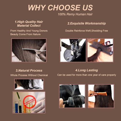 - ¡¼Remy Human High Quality Hair--Long-Lasting and Reusable¡½-- 100% remy human hair extensions. Thick & full ends,softness, glossy shine, silky texture, no tangles, no shedding. can be washed, straighten, curled, etc.They offer a natural and comfortable experience, satisfying the preferences of individuals who are looking for a natural and seamless look. With careful care, clip in hair extensions can last up to 4 months or more.