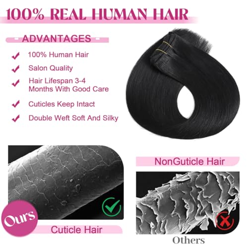 Clip in Hair Extensions Real Human Hair, Remy Human Hair Extensions Clip ins for Women, 100% Natural Human Hair, Double Weftm, 22inch 110g 8Pcs, #1 Jet Black